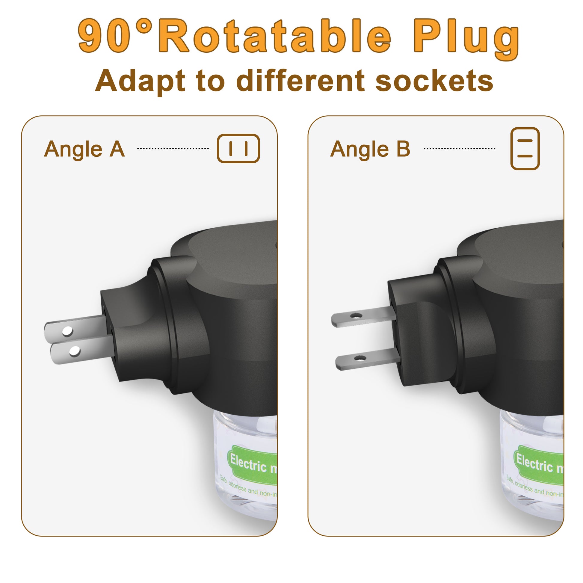 【90°ROTATABLE PLUG】 The plug can be rotated 90 degrees, so you can freely adjust its direction according to the position of the socket. Whether using a wall socket or a trailing socket board, keep the liquid bottle upright at all times to prevent liquid leakage.